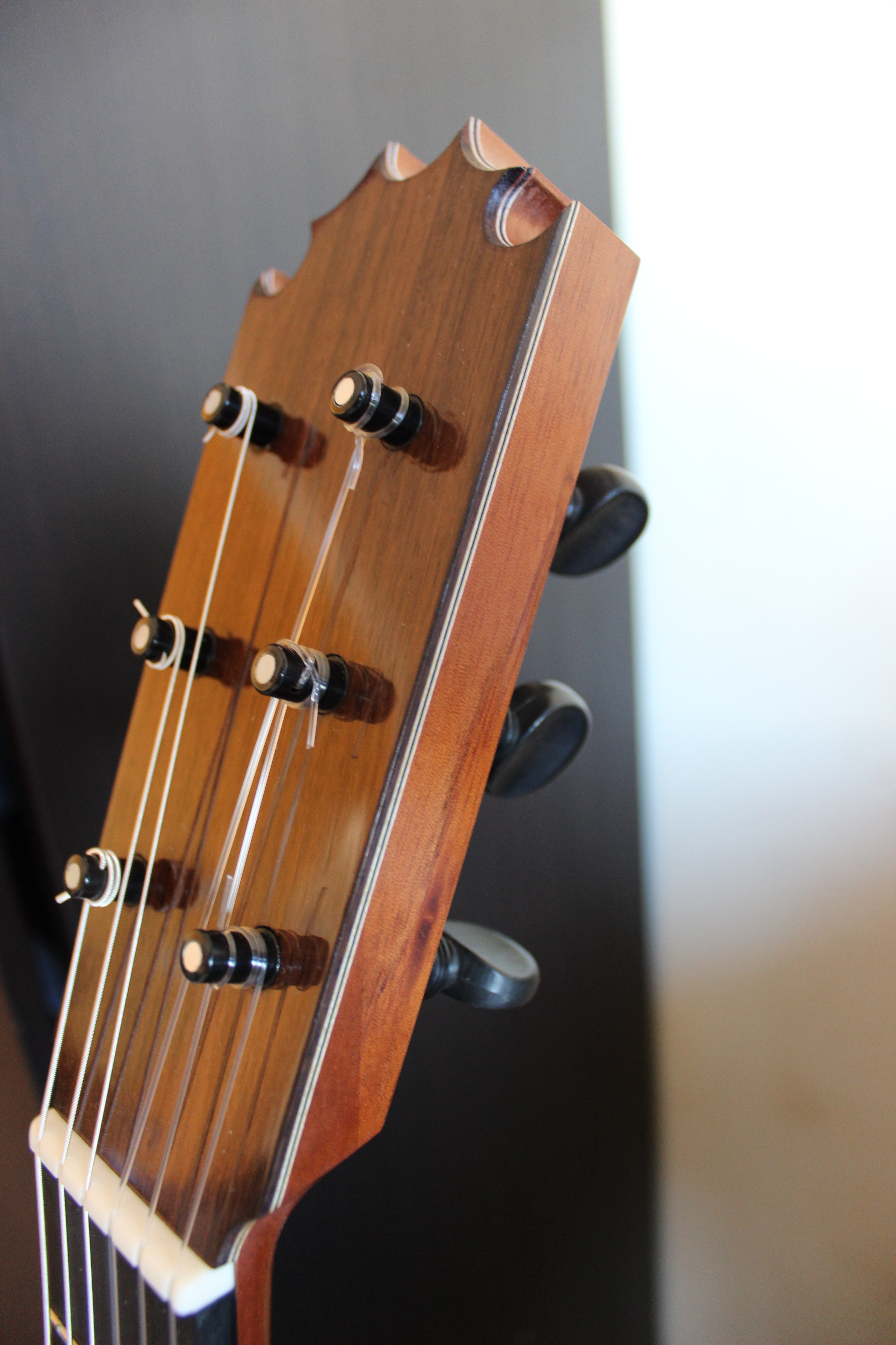 Este fin de semana hemos entregado una guitarra de palosanto y cedro a uno de nuestros clientes. La guitarra está montada usando el sistema Menduiña y tiene clavijas mecánicas, en vez de clavijero, a petición del cliente.